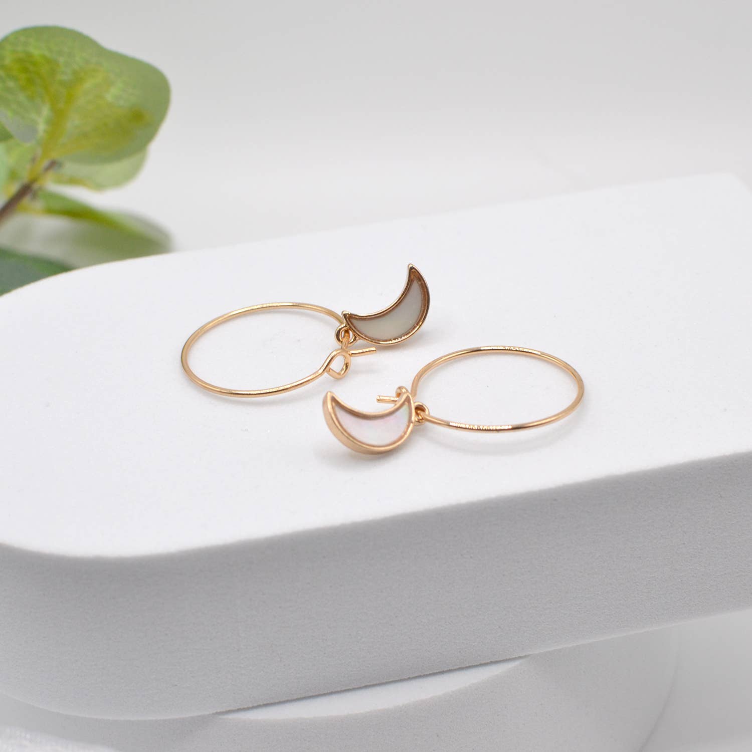 🌙 Let your style shine with celestial charm. These elegant hoop earrings feature shimmering crescent moon drops inlaid with natural abalone mother of pearl for a dreamy, iridescent finish.
