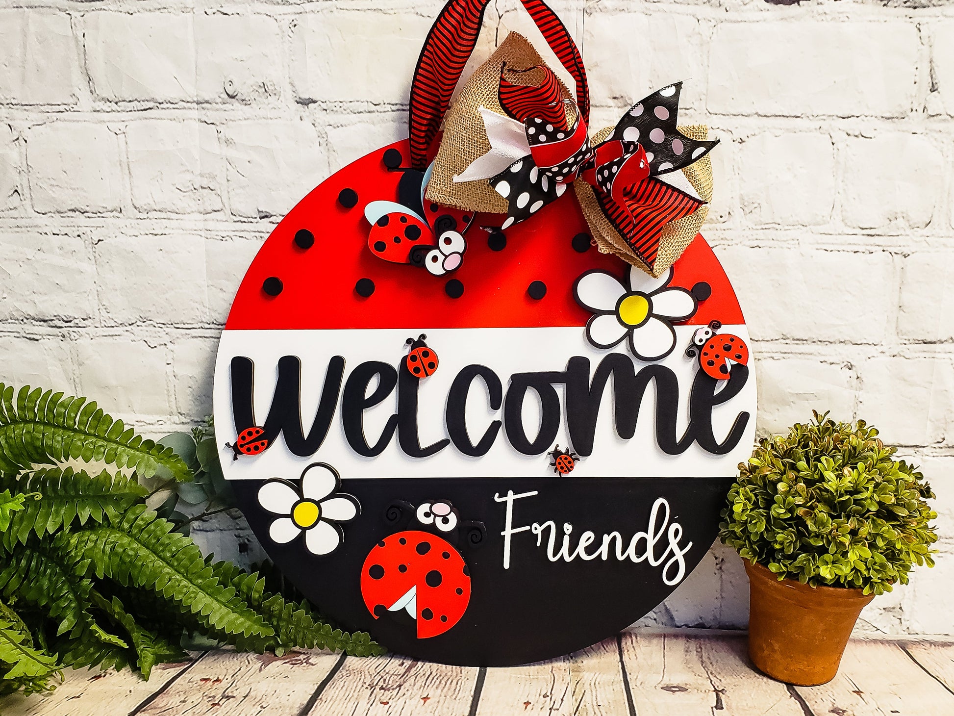 3D 1/4" MDF hand painted doorhanger. All door rounds are painted with exterior paint and suitable for outdoor use.